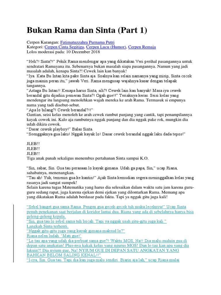 Bukan Rama dan Sinta (Part 1): Fatimatuzzahra Purnama Putri Cerpen Cinta Segitiga Cerpen Lucu (Humor) Cerpen Remaja