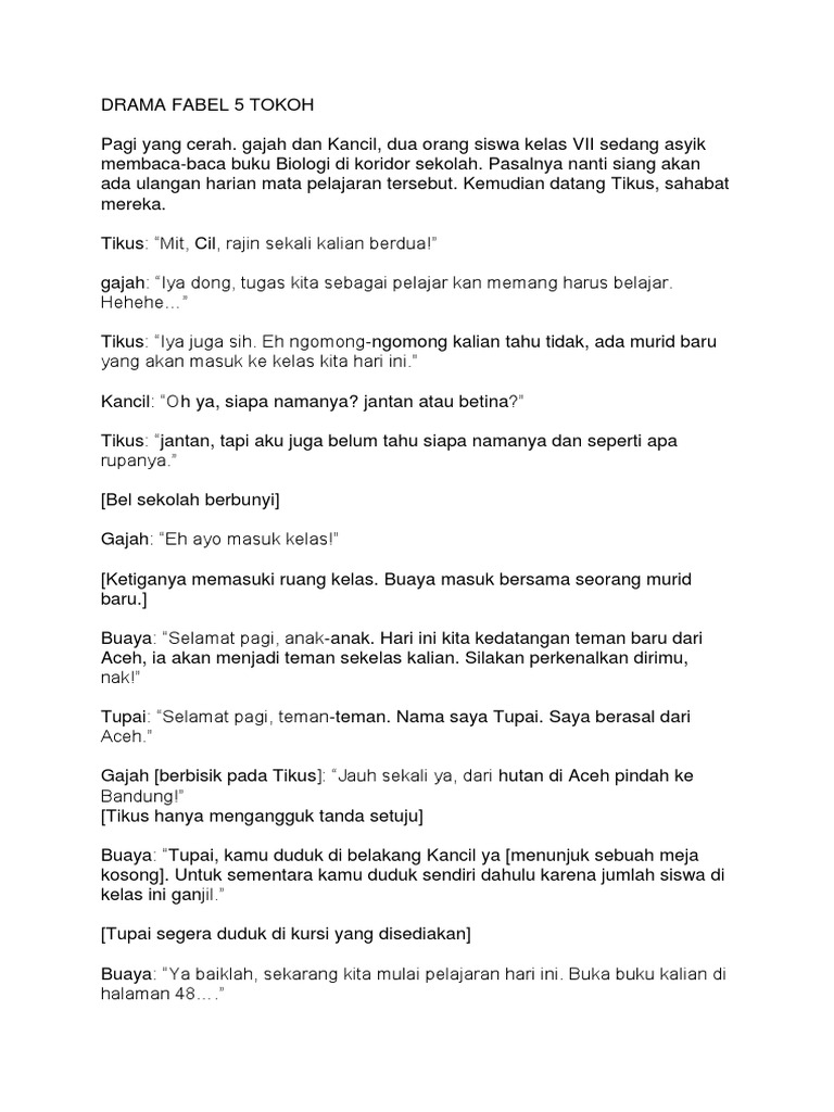 buatlah cerita fabel 5 tokoh - Brainly.co.id