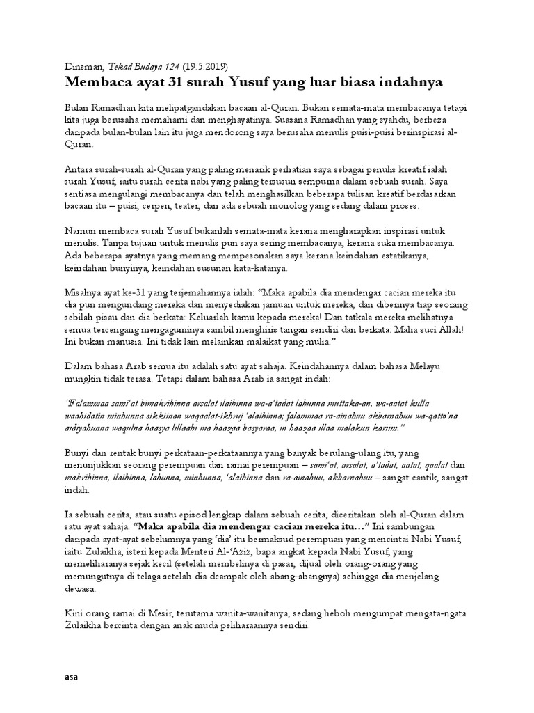 Membaca ayat 31 surah Yusuf yang luar biasa indahnya