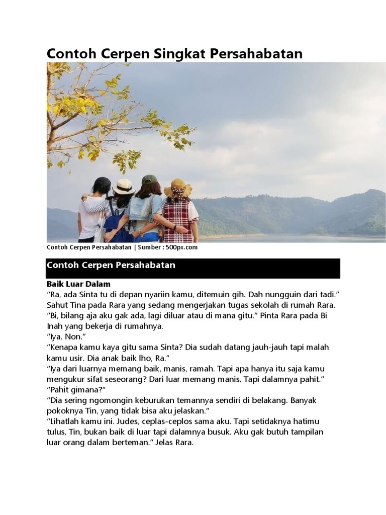 Contoh Cerpen Persahabatan Beserta Unsur Intrinsik Dan Ekstrinsiknya
