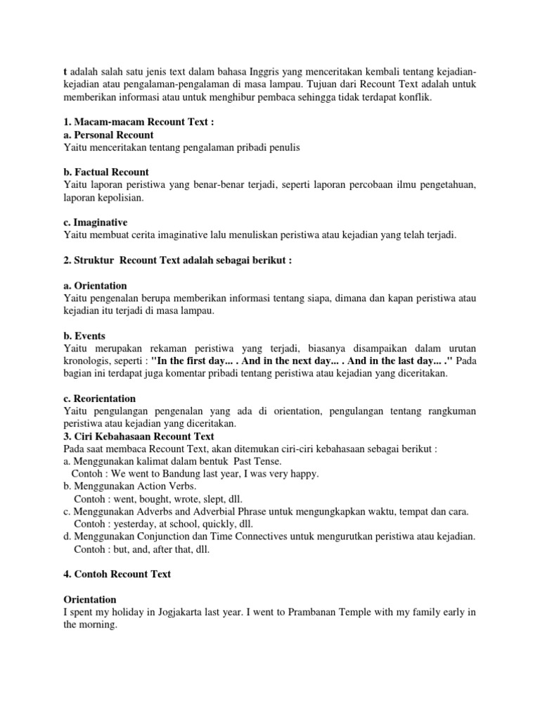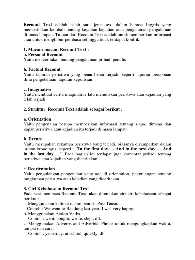 Pemahaman Recount Text Dalam Bahasa Inggris