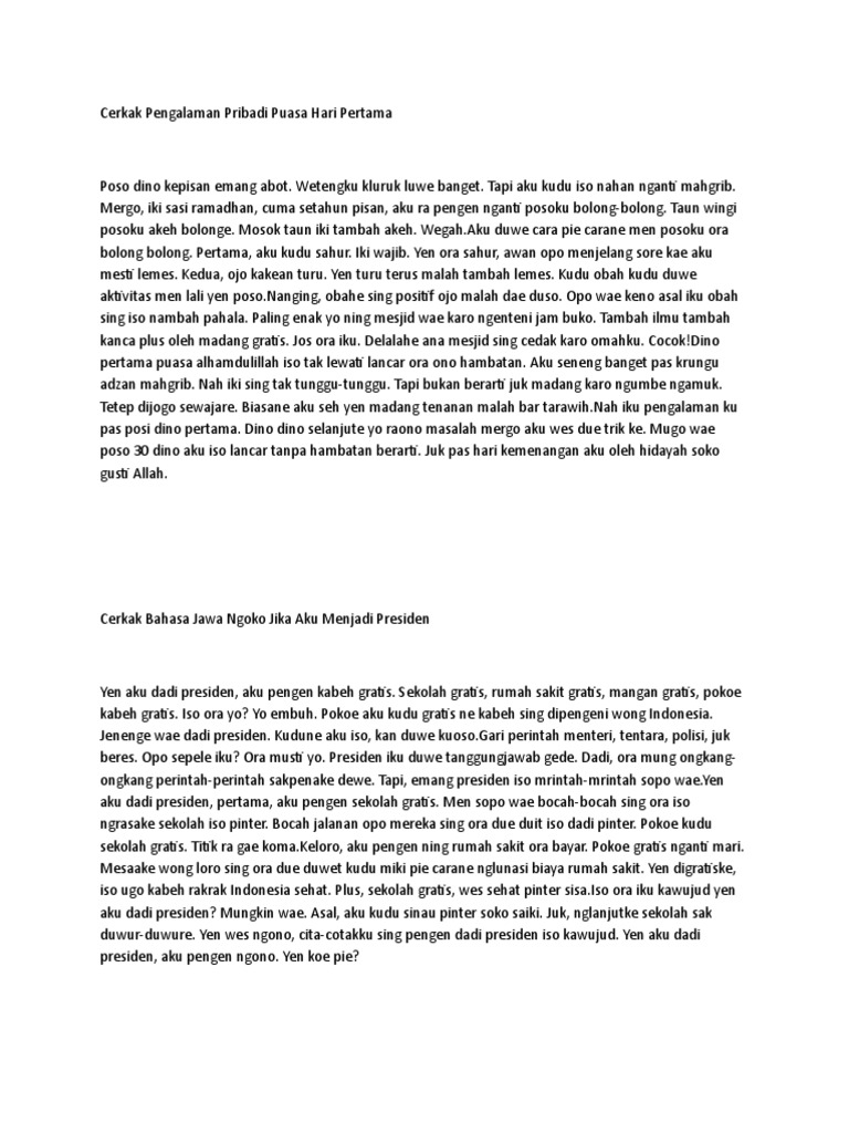 Contoh Pengalaman Pribadi Menggunakan Bahasa Jawa - Aneka Macam Contoh