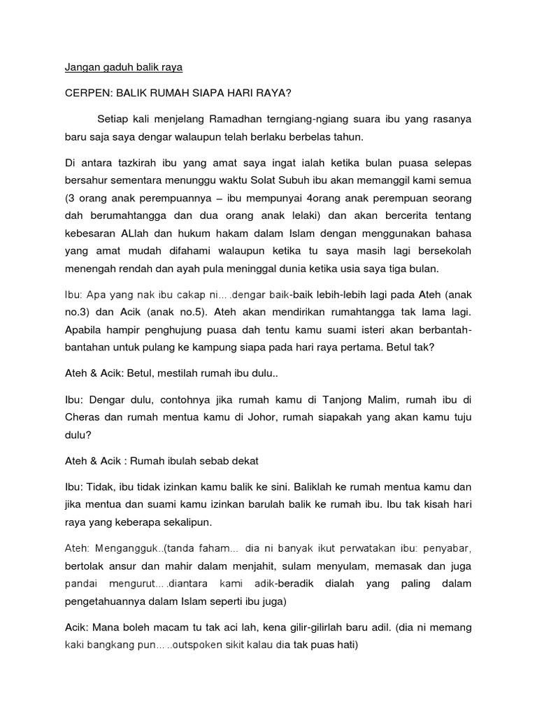 Says - CERPEN: Raya Mana Tahun Ni? Nukilan: Aimee Thoib… | Facebook