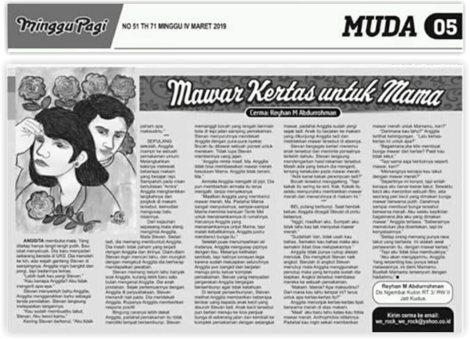 Cerpen Remaja Mawar Kertas untuk Mama Dimuat di Koran Minggu Pagi - Reyhan M Abdurrohman