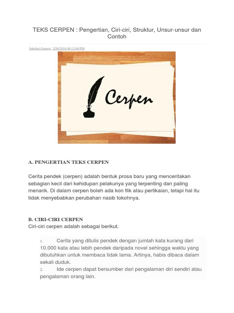 TEKS CERPEN: Pengertian, Ciri-ciri, Struktur, Unsur-unsur dan …