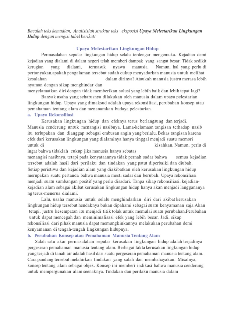 Struktur Teks Upaya Melestarikan Lingkungan Hidup