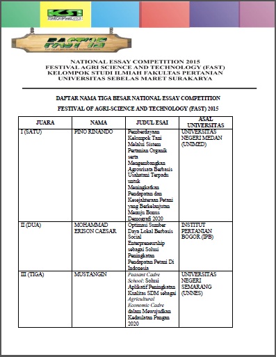 KSI FP UNS: National Essay Competition FAST 2015 (Festival Agriculture of Science and Technology)