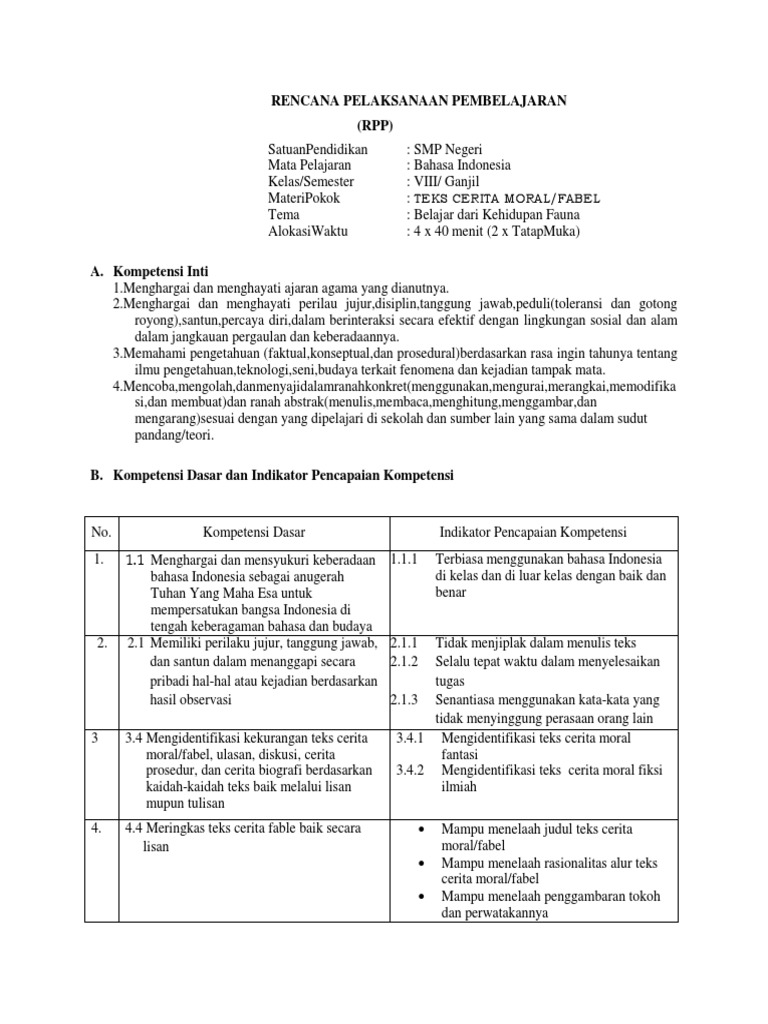 Contoh RPP Teks Cerita Pendek SMP Kelas