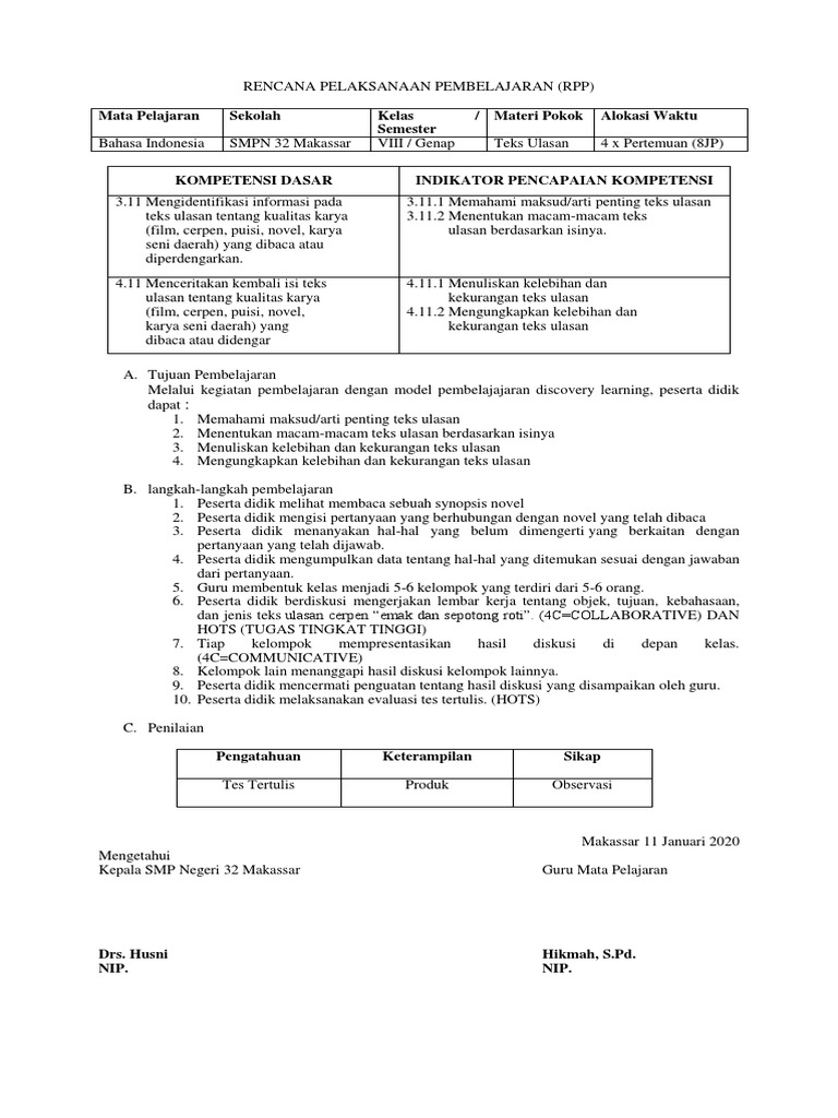 RPP teks ulasan