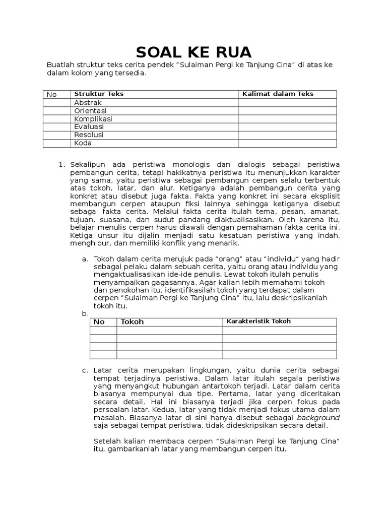Buatlah Struktur Teks Cerita Pendek Sulaiman Pergi Ke Tanjung Cina …
