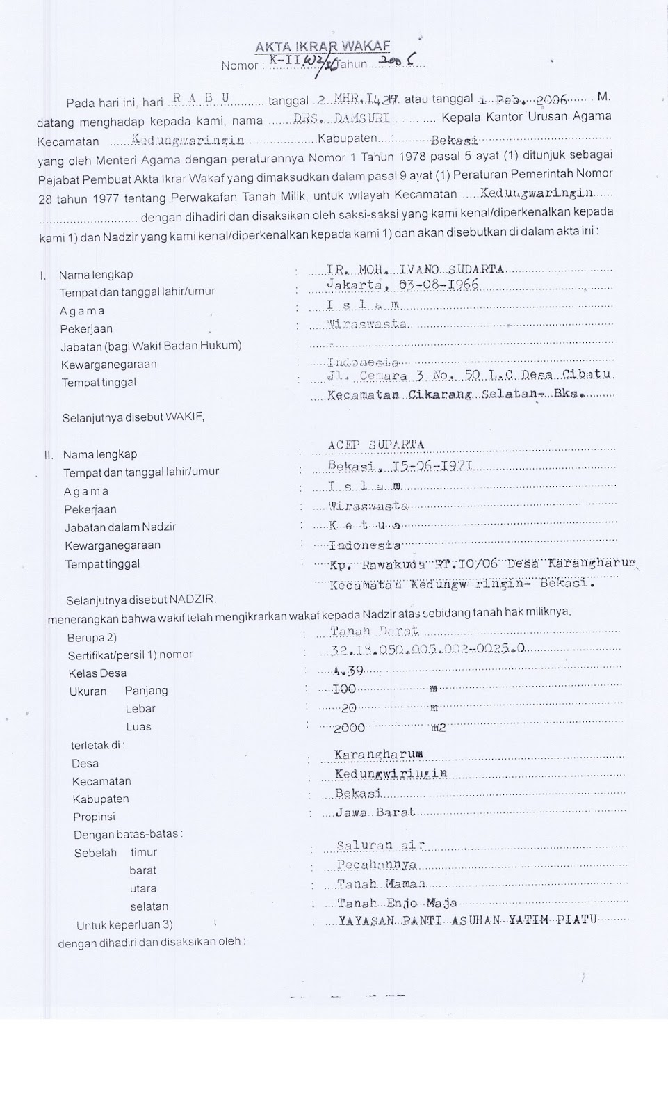 ANALISIS TERHADAP PERUBAHAN TANAH WAKAF MENJADI TANAH INDUSTRI (Studi Kasus Di Desa Sengon Bugel Kecamatan Mayong Kabupaten Je
