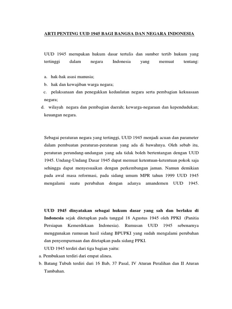 Pentingnya Uud 1945 Bagi Bangsa Dan Negara