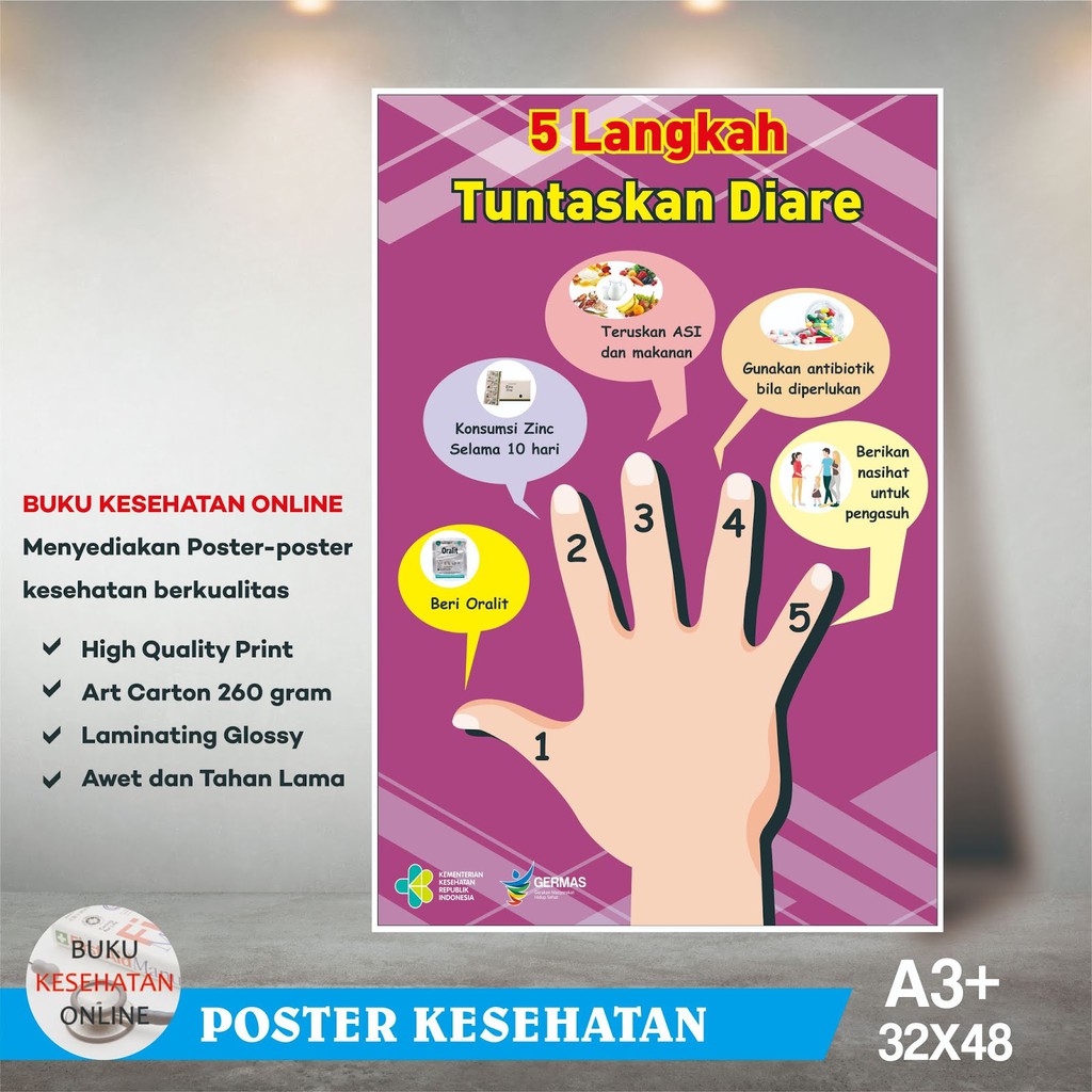 Poster Kesehatan - 5 LANGKAH TUNTASKAN DIARE (2) - LAMINATING …