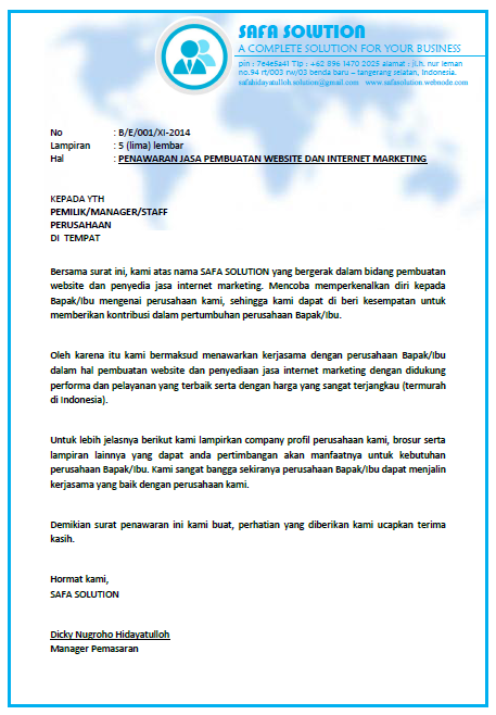 Contoh Surat Penawaran Jasa Pembuatan Website dan Toko Online
