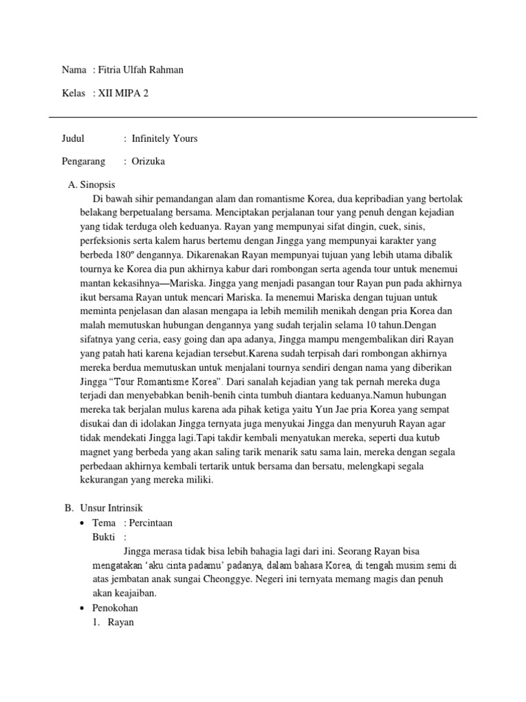 Tugas Bahasa Indonesia Resensi Novel Infinitely Yours
