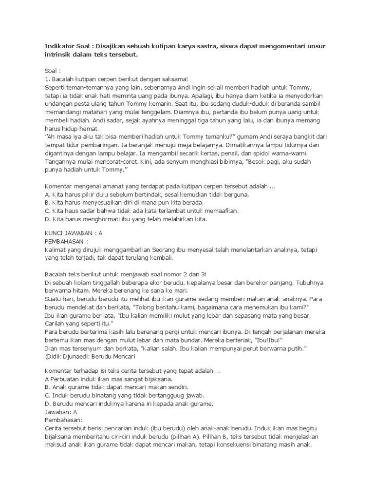 Soal Cerpen Dan Kunci Jawaban bahasa