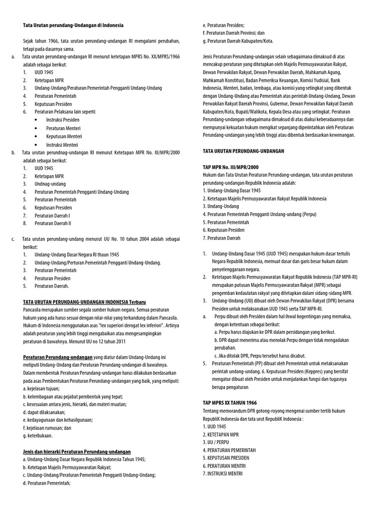 DOC) Tata Urutan Peraturan Perundang-undangan | Aldyna Threesya - Academia.edu