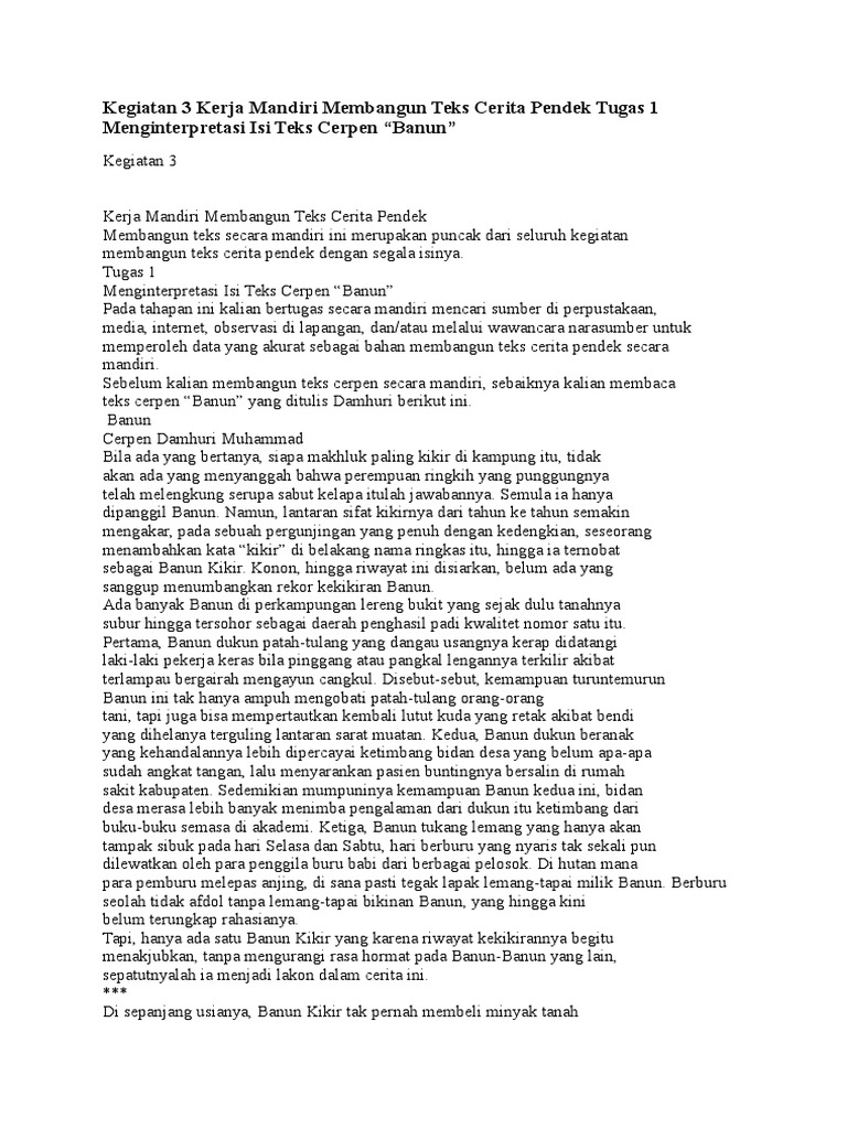 Kegiatan 3 Kerja Mandiri Membangun Teks Cerita Pendek Tugas 1 …