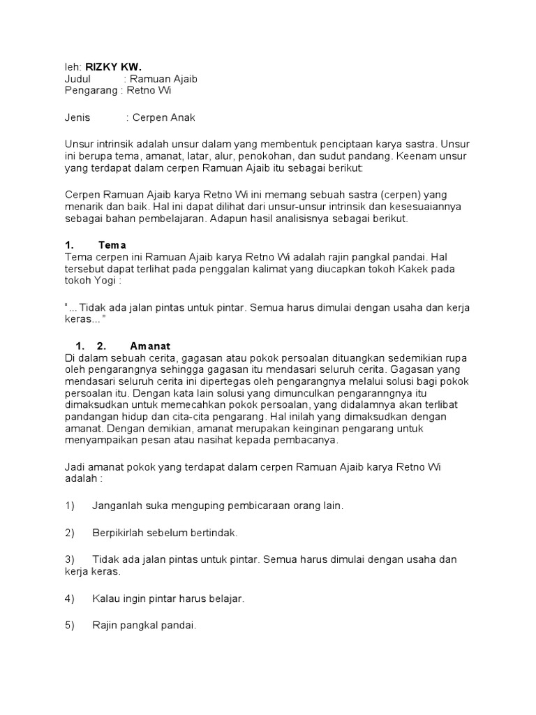 DOC) 4 Contoh Cerpen Beserta Unsur Intrinsik dan Ekstrinsiknya | Dian Rahmawati - Academia.edu