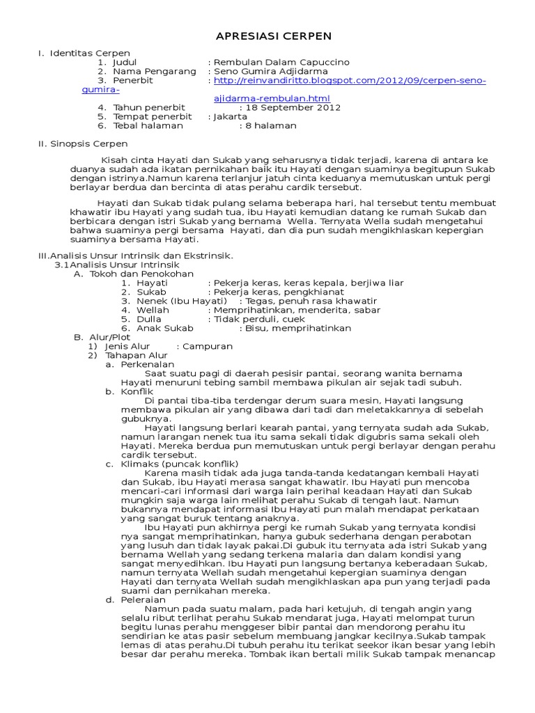 DOC) ANALISIS CERPEN “PELAJARAN MENGARANG” KARYA SENO GUMIRA …