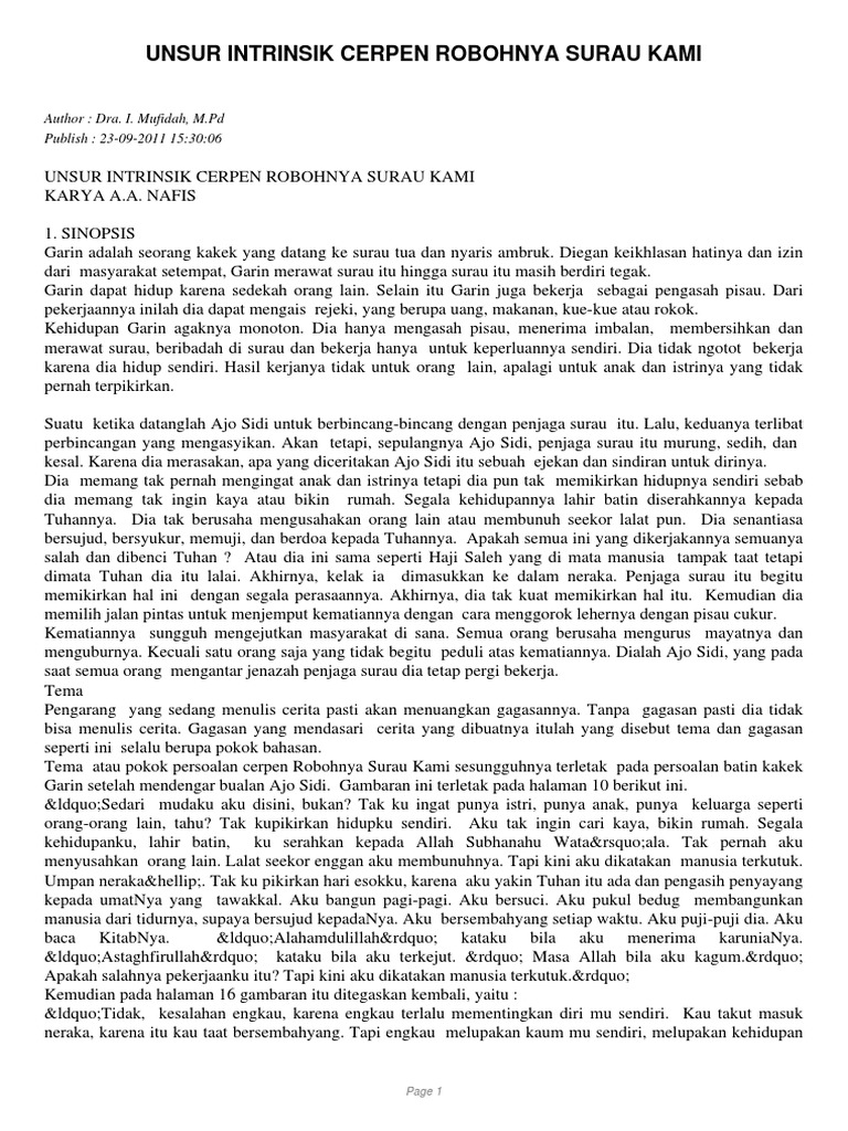 DOC) Cerpen Robohnya Surau Kami karya AA Navis | Nara Aska - Academia.edu