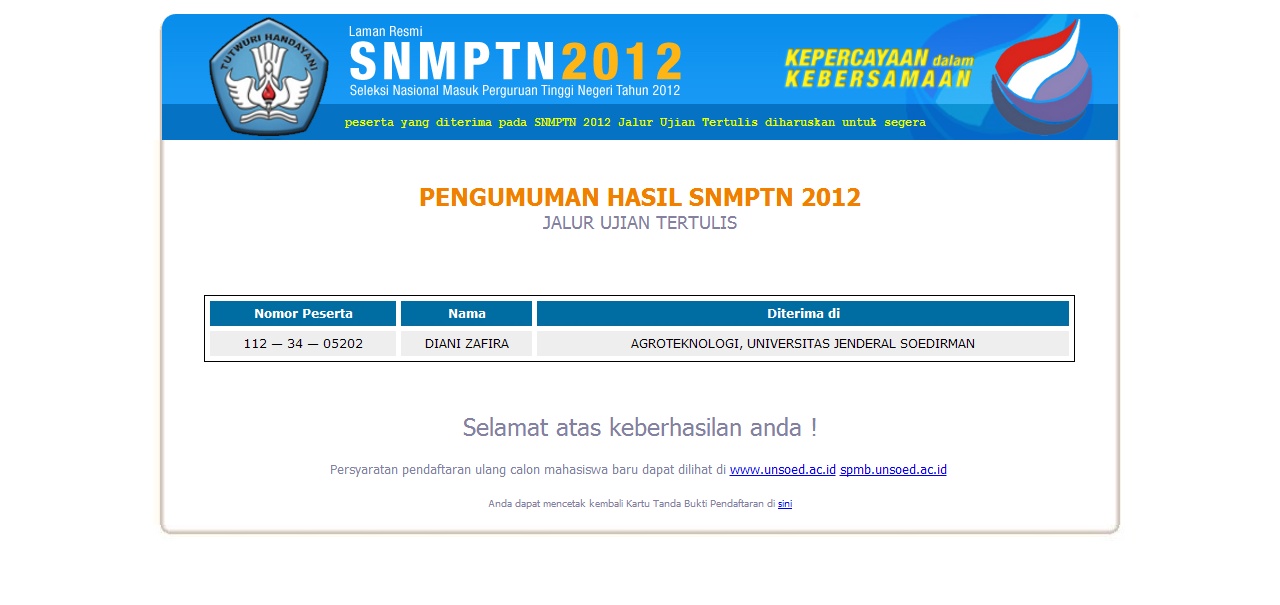 Coretan Diani Zafira: Alhamdulillah lolos SNMPTN 2012