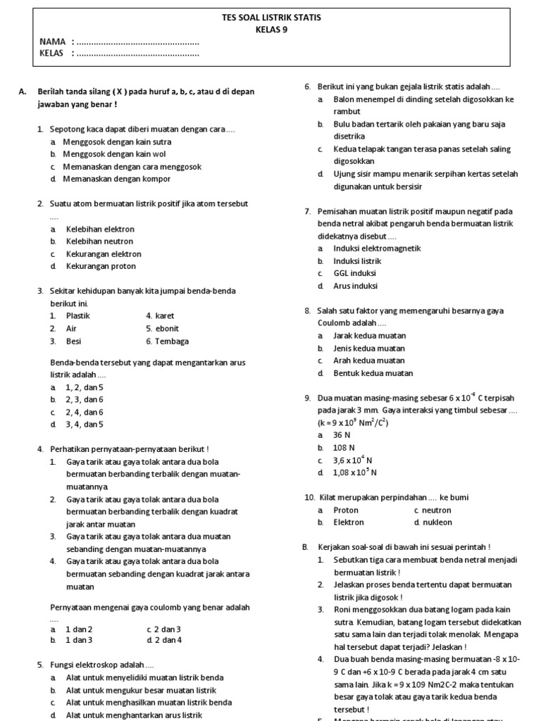 Ulangan Harian Listrik Statis Smp Kelas Ix - [PDF Document]