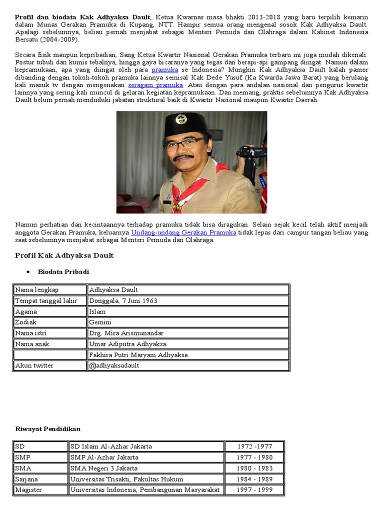 Aku Pramuka, Kamu ???: Biografi Adhyaksa Dault, Ketua Kwarnas 2013-2018