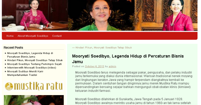 Biografi Dan Profil Mooryati Soedibyo - Cerita Sukses Pendiri Perusahaan Kosmetik Mustika Ratu | Loper Artikel
