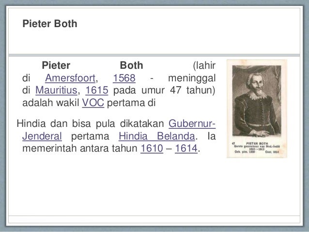 Kebijakan apa saja yang dilakukan pieter both pada masa kolonial? - Brainly.co.id