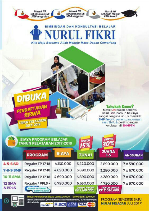 Promo Diskon 30% TA 2017/2018 | Nurul Fikri Kedaton