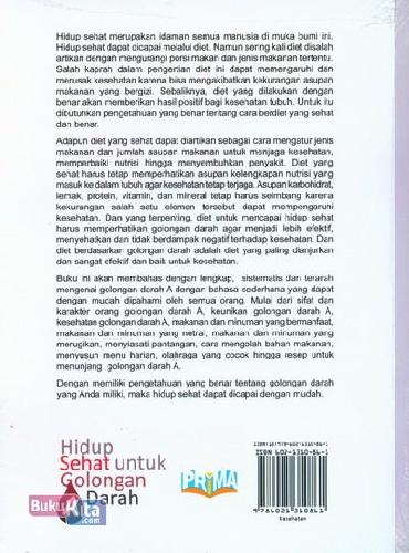 Buku Hidup Sehat Untuk Golongan Darah A | Toko Buku Online - Bukukita