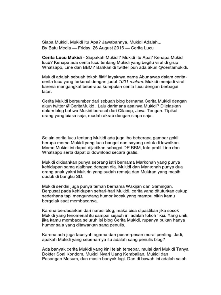 Berani Baca Cerita Lucu Mukidi. Berikut 29 Ceritanya Dijamin Bikin.. | SiwoNews