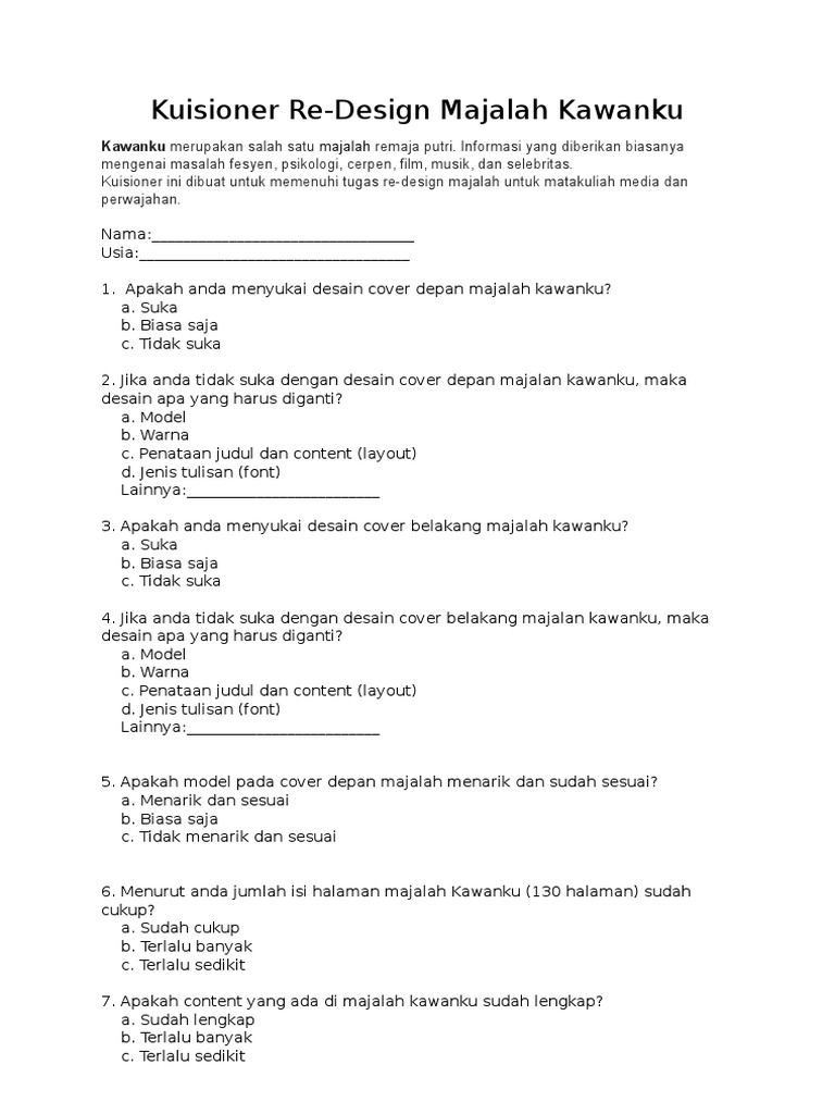 Kuisioner Re-Design Majalah Kawanku: Kawanku merupakan salah satu