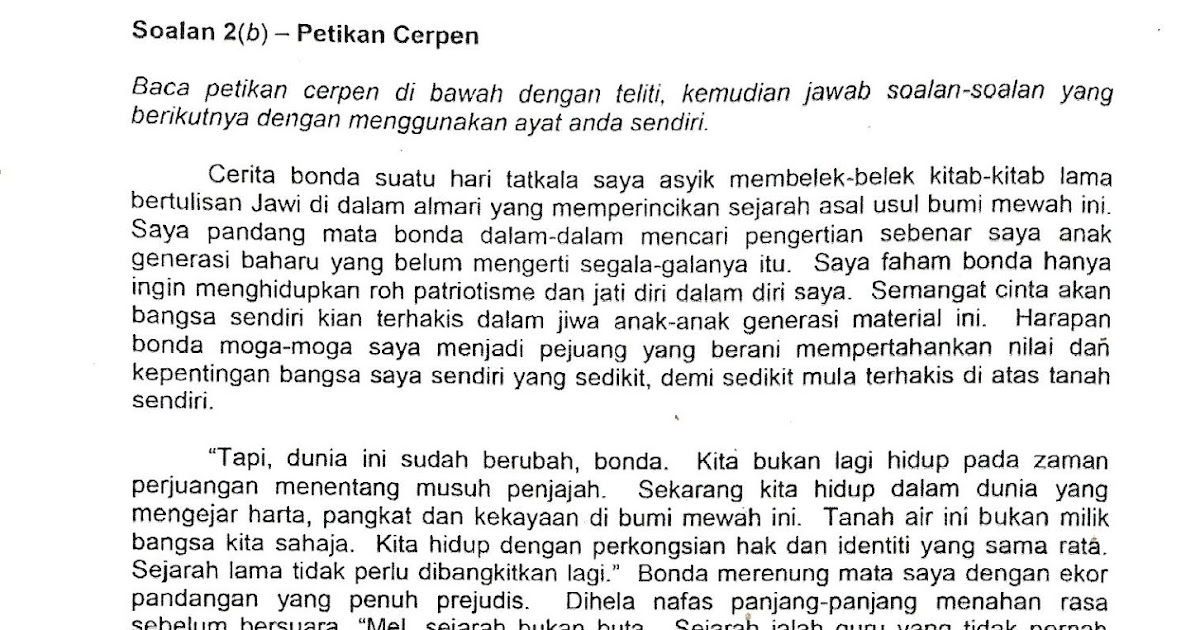 Laman Bahasa Melayu SPM: SOALAN DAN CADANGAN JAWAPAN SOALAN 2(B) PEMAHAMAN PROSAN MODEN PEPERIKSAAN PERCUBAAN NEGERI KELANTAN