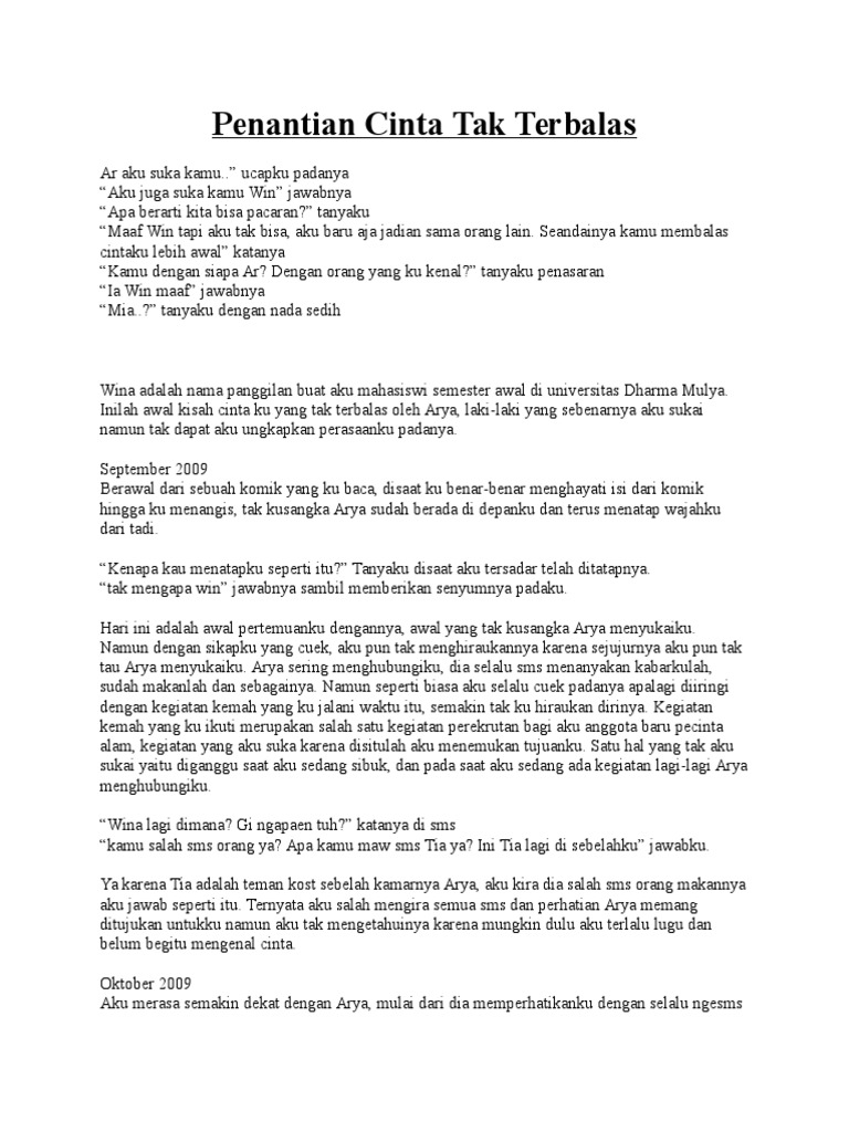 Cerpen Cinta Sedih - Kasih Tak Terbalas - Wattpad