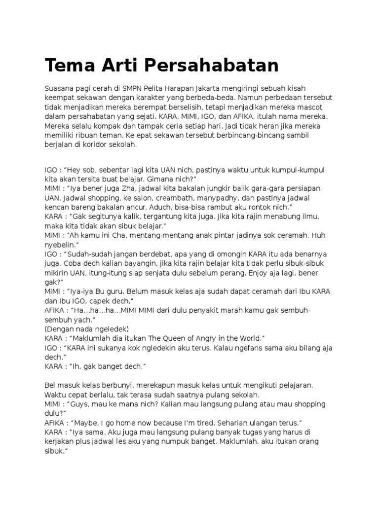 DOC) Contoh cerpen arti persahabatan | Maria Edo - Academia.edu