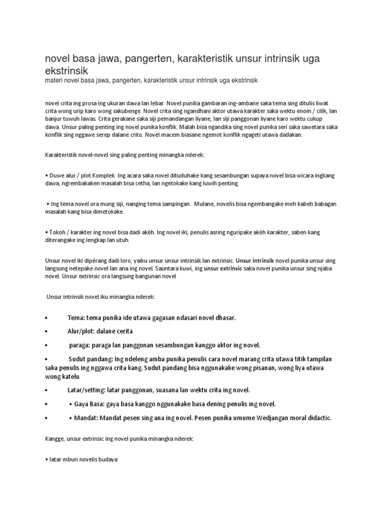 Contoh Novel Bahasa Jawa Dan Unsur Intrinsiknya - Temukan Contoh