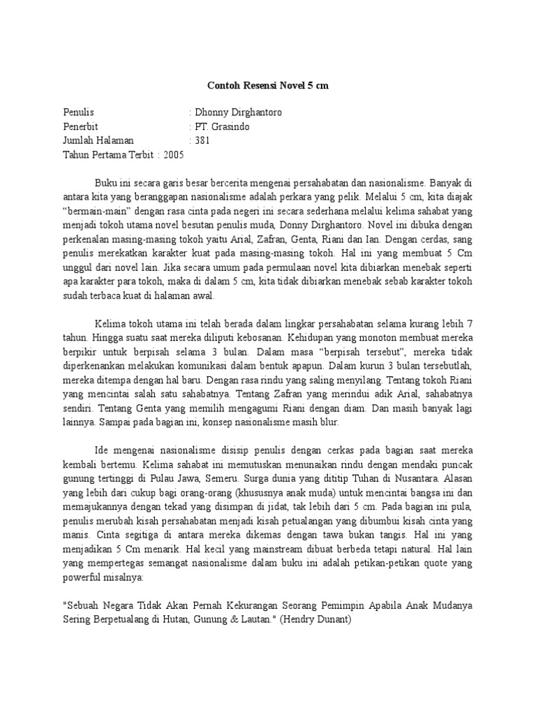 Contoh Resensi Novel 5 Cm Singkat - Kumpulan Contoh Makalah Doc Lengkap