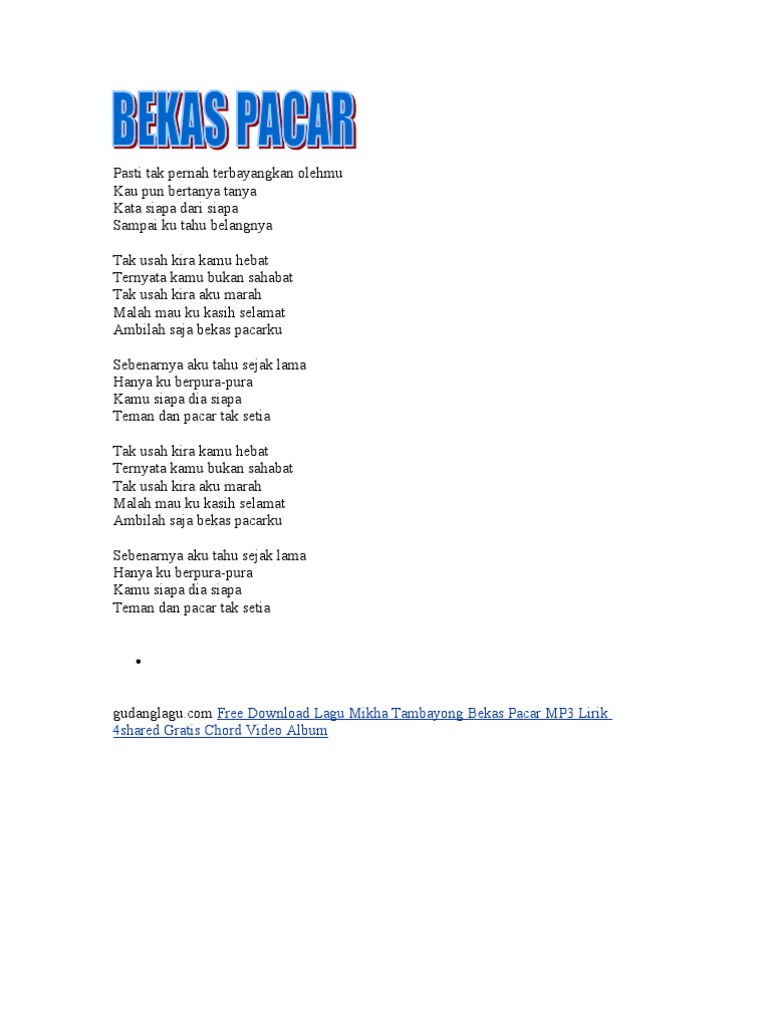 Free Download Lagu Mikha Tambayong Bekas Pacar MP3 Lirik 4shared Gratis Chord Video Album