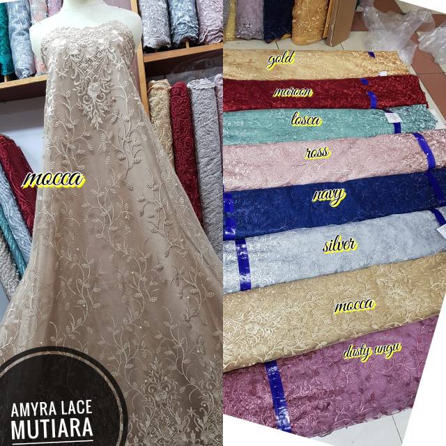 Kain bahan Tulle akar mutiara / brokat akar mutiara,bahan gaun,kebaya.( Harga permeter). | Shopee Indonesia