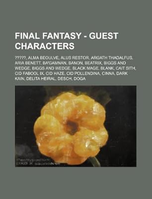 Final Fantasy - Guest Characters: ?????, Alma Beoulve, Alus Restor, Argath Thadalfus, Aria Benett, Ba’Gamnan, Banon, Beatrix, Biggs and Wedge, Biggs … Cid Pollendina, Cinna, Dark Kain, Delita - Source Wikia |