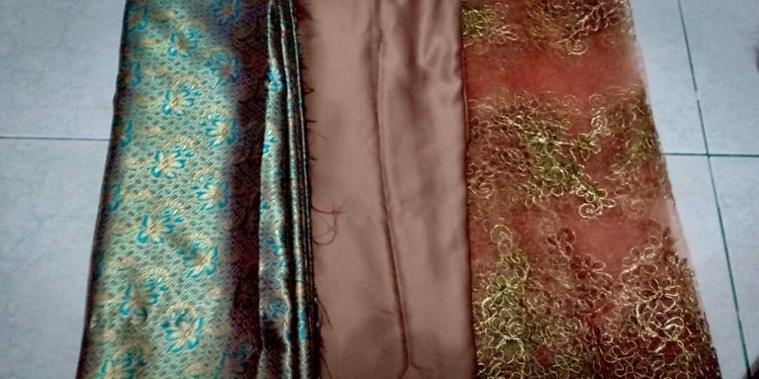 Bahan kain brukat tile bawahan dan dalaman bahan satin, Fesyen …