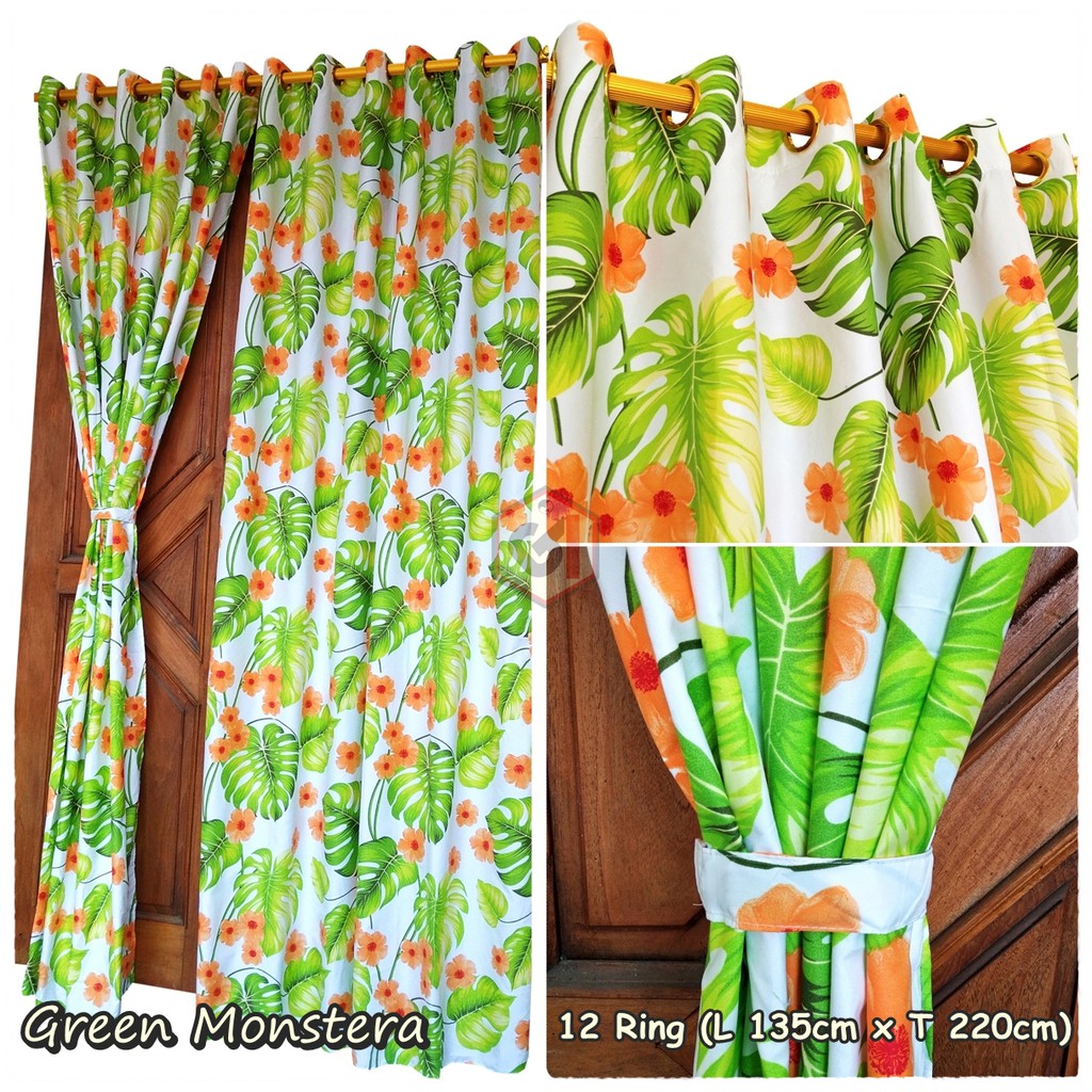 Gorden Pintu Jendela Murah Model Smokering 12 Ring Motif Daun Monstera Sangat Mewah Elegan | Shopee Indonesia