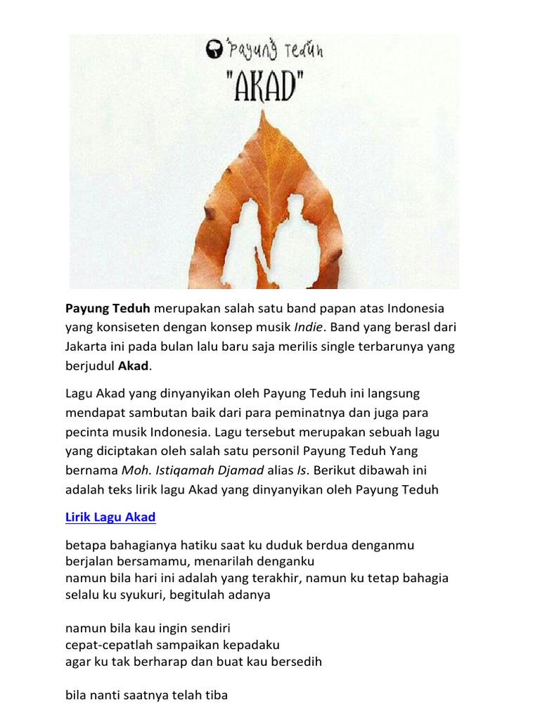 Teks Lagu Akad Dari Payung Teduh - Berbagai Teks Penting