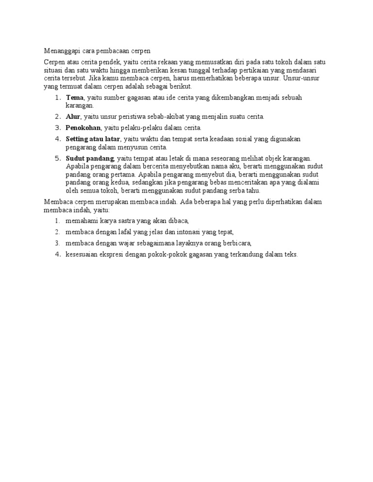 unsur-unsur yang perlu dicatat ketika hendak menanggapi pembacaan cerpen - Brainly.co.id
