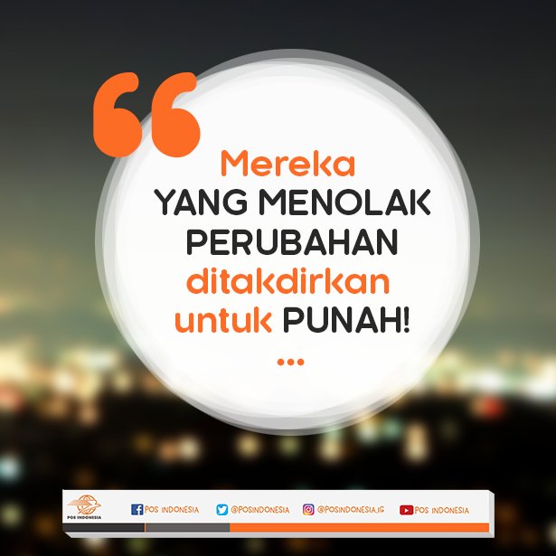 POS INDONESIA en Twitter: “Hal yg tdk pernah berubah di dunia ini adalah perubahan itu sendiri. Jangan takut menerima perubahan. #WeCarryMissions #270ThPosUntukNegeri… https://t.co/NZlYFS2QvN”
