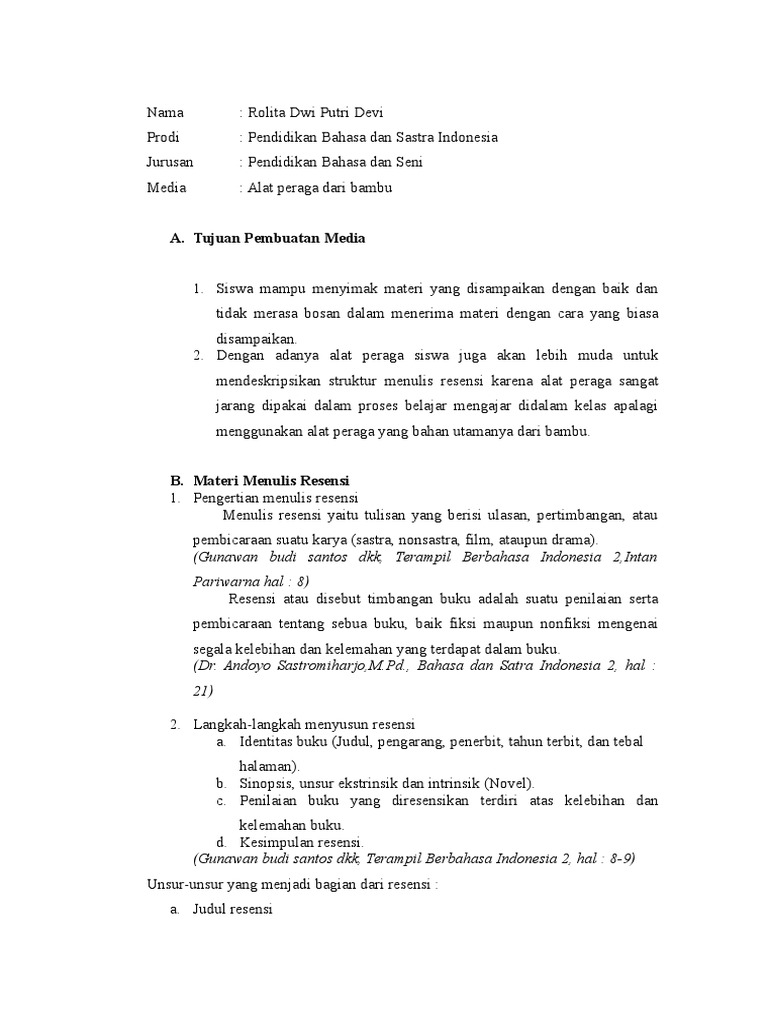 DOC) MAKALAH MENULIS RESENSI Dosen pembimbing : Disusun oleh kelompok 13 | Cardona Jenni - Academia.edu