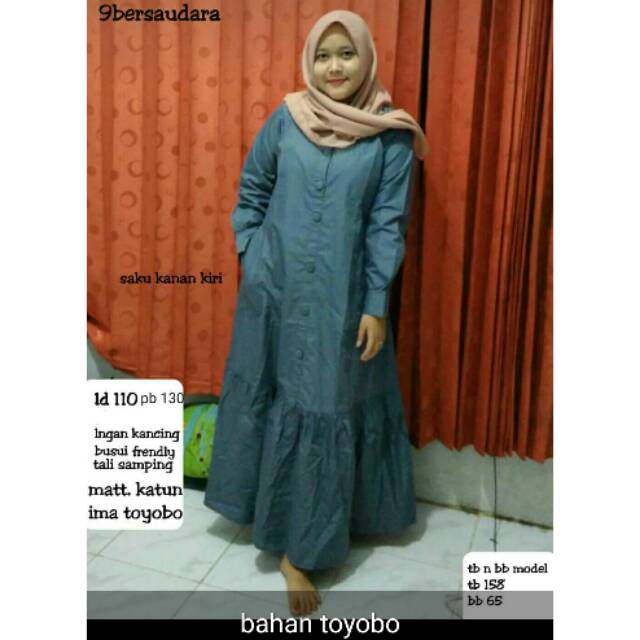 BAJU WANITA Toyobo kancing dress gamis katun jepang busana muslim maxidress syari saku | Shopee Indonesia