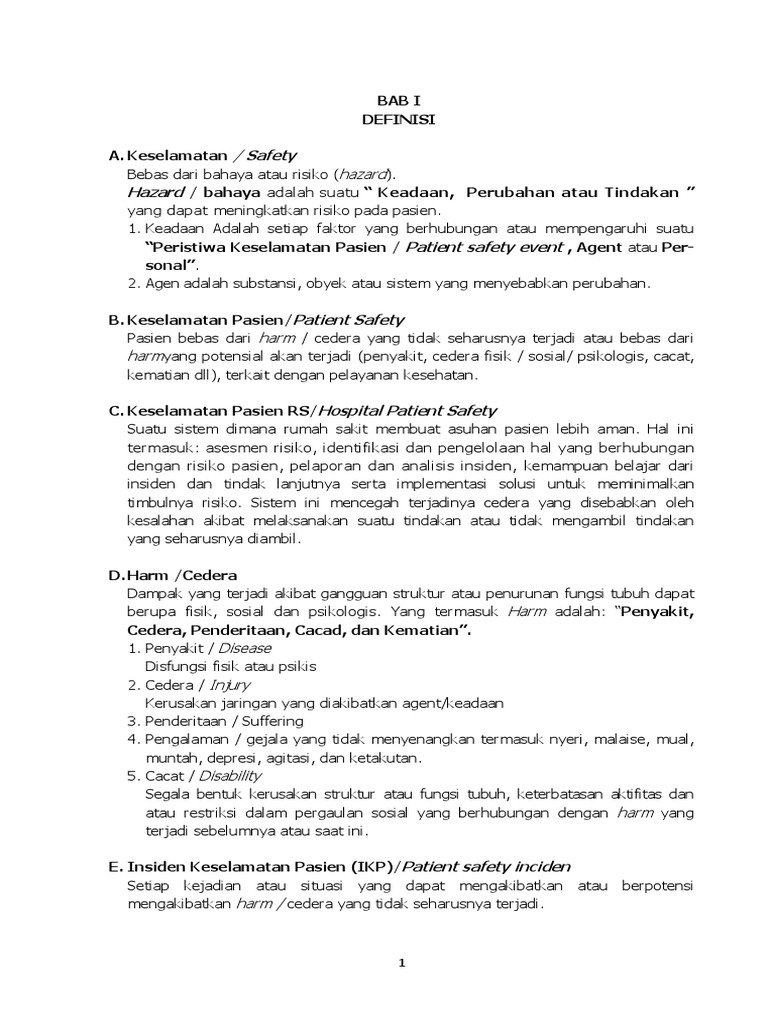 PEDOMAN PELAPORAN INSIDEN KESELAMATAN PASIEN (IKP) (PATIENT SAFETY INCIDENT REPORT) - PDF Free Download